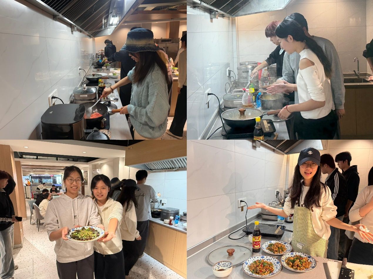 活动现场气氛热烈,师生协作默契。同学们手法娴熟,“削皮切丝、起锅烹炒”,一道道菜肴在手中诞生:清爽的凉拌菜、香气扑鼻的热炒、造型别致的点心、富有创意的特色美食,无不展现着同学们的巧思与用心。老师们也融入其中,或细心指导,或亲手示范,与同学们交流烹饪技巧、分享生活心得。欢声笑语中,大家共同应对制作中的小挑战,彼此距离悄然拉近。