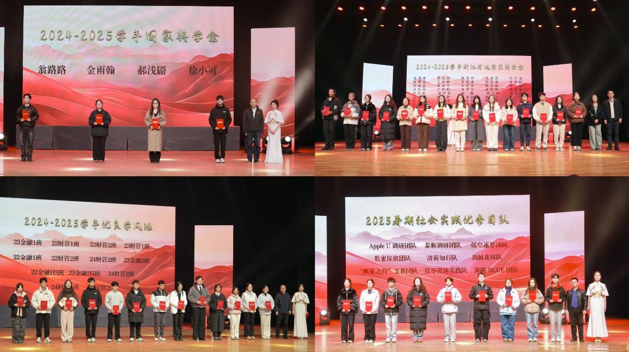 在表彰环节中,学院领导依次为荣获“国家奖学金”、“浙江省政府奖学金”、“院级优良学风班”和“暑期社会实践优秀团队”等在学业成绩、学科竞赛、学风建设、社会实践等方面表现突出的个人与集体代表颁奖。该环节不仅是对优秀学生的肯定,也树立了同学们身边学习的榜样,以朋辈力量激励全体同学见贤思齐、奋发向上。