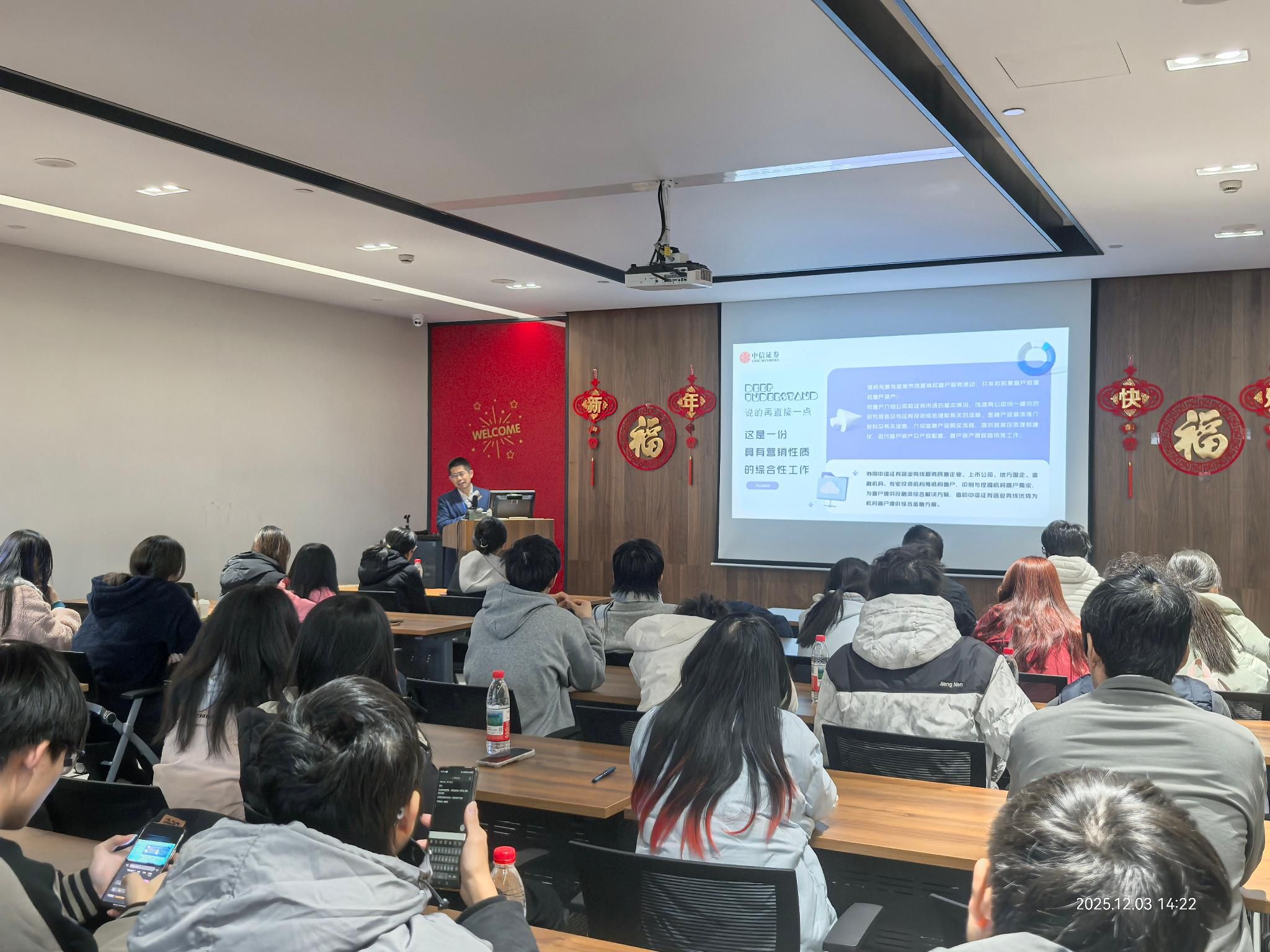 12月4日,在学工办与金融工程系教师的带领下,30余名学生走进中信证券萧山分公司金城路营业部。营业部负责人吴叶灿对师生到来表示欢迎,并系统介绍了中信证券的发展历程、业务板块、行业地位与企业文化。结合自身丰富的行业经验,吴叶灿为同学们带来一场生动的职业生涯规划讲座,从金融行业发展趋势、人才能力需求、职业发展路径等多维度进行剖析,鼓励大家夯实专业基础、拓展综合素质、尽早明确职业方向。互动环节中,同学们积极提问,现场气氛热烈。