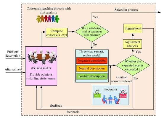 应急决策(EDM)是一个多阶段、多主体、多层级的适应性动态演进过程。在处置重大公共危机和突发事件时,应急决策的水平直接影响到决策的质量和效果,进而影响突发事件的应急处置。因此,如何提高应急决策的效能显得尤为重要。由于决策过程的复杂性、紧迫性,以及决策专家知识领域的差异性,使得共识决策需要花费较高的成本。为此,研究团队创造性的提出了一种具有情感偏好的三支语义量表模型,并在此基础上设计了非对称的最小成本共识模型,进一步开发了一个考虑决策者后悔厌恶心理行为的综合反馈调整机制,同时可以防止专家的人为操纵行为,最后,通过案例研究验证了新方法的合理性和有效性。