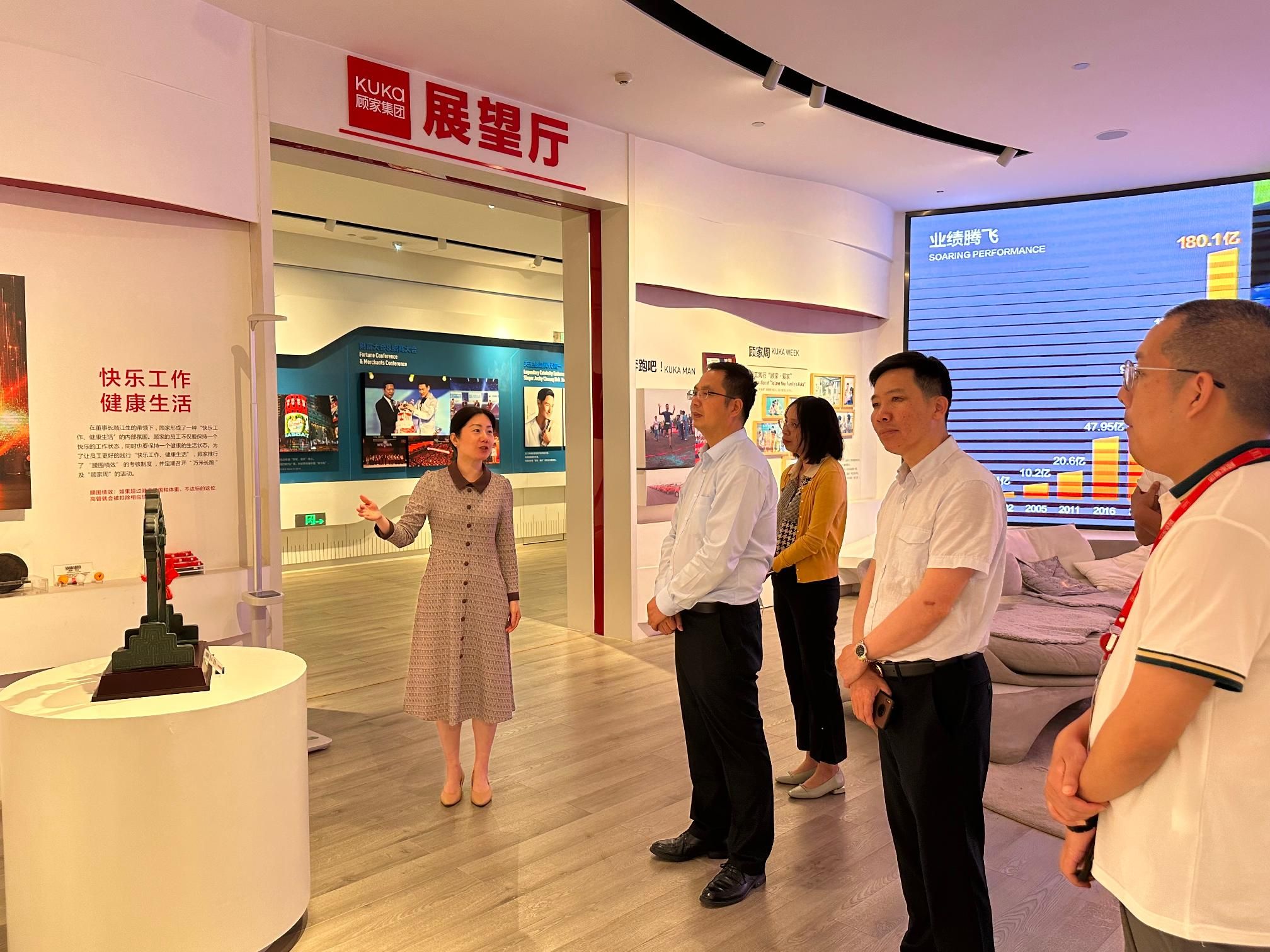 李战国一行在顾家集团党委副书记胡晓青和办公室副主任杨军杰的热情接待下参观了顾家集团的各个展厅,了解了集团的发展历程、建设规模及公司发展历程和未来建设规划。双方就校企合作进行了深入交流。