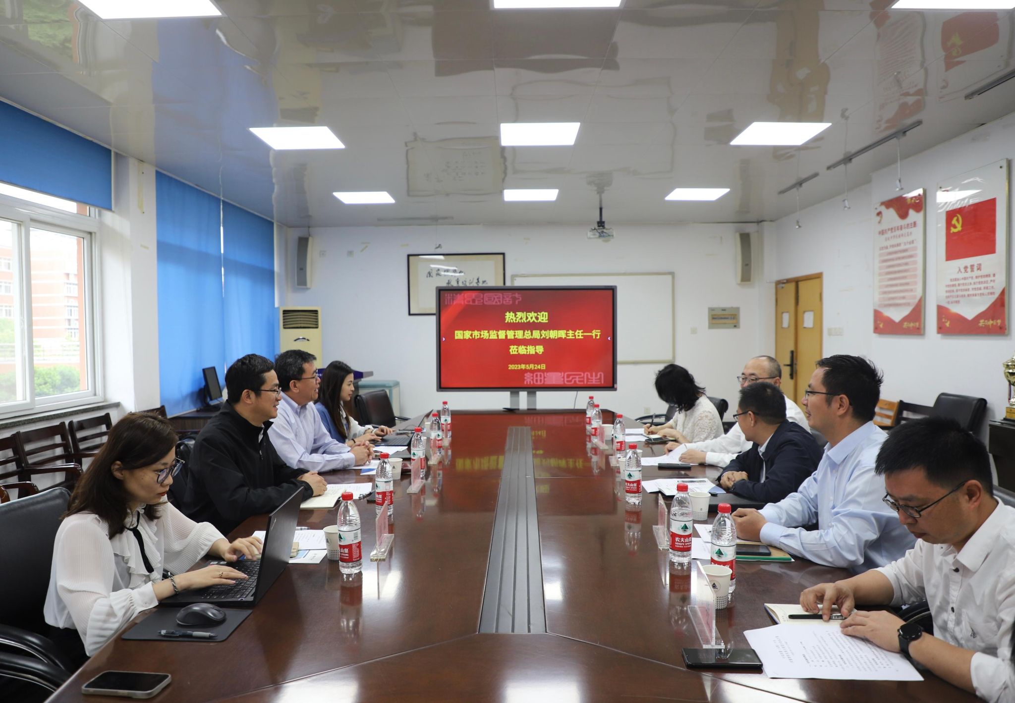 2023年5月24日,市场监管行指委秘书长、市场监管总局专业技术人才开发中心副主任刘朝晖,中国检验检测学会副会长兼秘书长夏扬,中国检验检疫科学研究院综合检测中心田瑜、中国检验检测学会科标部、中科测事务所主任蔡婷婷一行4人来经济与管理学院调研,进行深入洽谈。经济与管理学院院长乐为、党委书记李战国、学院副院长余晓及党委副书记陈骅等领导出席调研会。