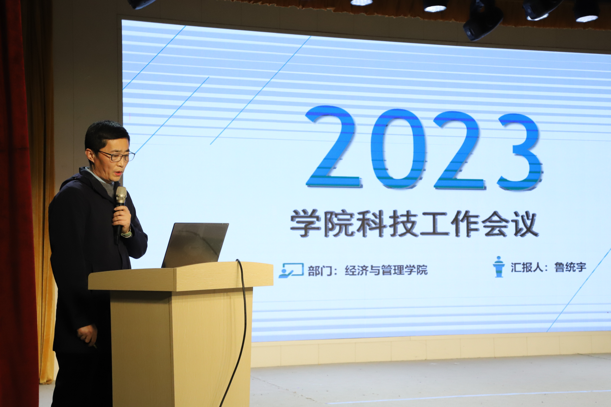 2024年1月12日,经济与管理学院在启明中心召开学院第二十五届科技工作会议。学院领导班子和全体教师参加,会议由党委书记李战国主持。