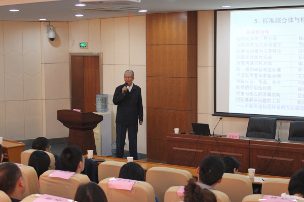 2014年10月14日上午,正值第45届世界标准日之际,应我校经济与管理学院和质量发展研究院的邀请,中国著名标准化专家李春田教授应邀来校开展“综合标准化方法”专题报告会。在校参加培训的中国航天科工集团标准化研修班全体学员、学校相关专业教师,以及30多位来自浙江省质量技术监督局标准化处、浙江省标准化研究院的领导和研究人员到场聆听了专题报告,报告会由经管学院易荣华院长主持。