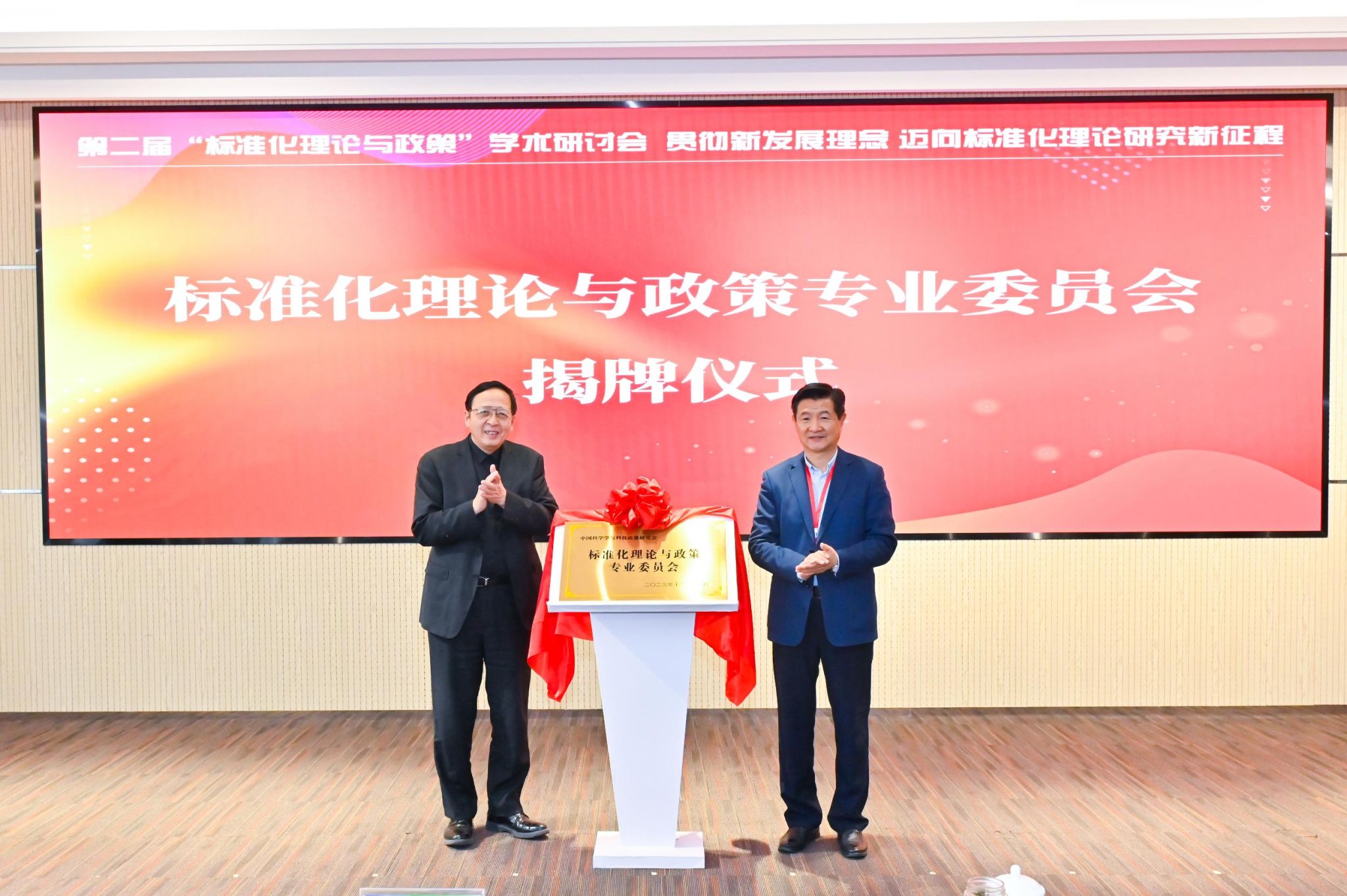 会上,穆荣平和宋明顺共同为专委会揭牌。该专委会由中国计量大学牵头,与中国科学院、中国标准化研究院、中国标准化协会、清华大学、北京大学、浙江大学、吉林大学、湖南大学、中国计量大学、青岛大学、杭州电子科技大学等研究机构与高等院校共同发起,秘书处挂靠在中国计量大学。专委会的正式成立,将成为我国标准化理论与政策研究的一个新起点。