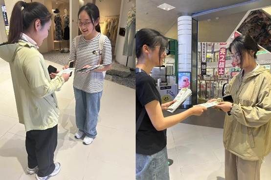 “世界依然爱你”实践队”准备了宣传海报、传单,并设计了一些互动环节,如心理健康知识问答、抑郁症自测量表等。本次活动宣传册的主题为:拒绝心理健康“污名化”,也要拒绝心理疾病“标签化”。它介绍了抑郁症的病因,什么是“抑郁症污名化”,从患者自身、家人与朋友、我们每个人的角度分别如何去污名化,以及如何跟抑郁症患者讨论抑郁症这件事。实践队成员将一份份宣传册递交到路人手中,并热情耐心地介绍本次“抑郁症去污名化”活动的初衷与内容,不少路人都深感兴趣,愿意聆听成员的科普并且接过宣传册细细翻看,他们将把宣传册带回家,与家人和朋友分享新学到的有关抑郁症的知识。