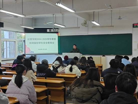 为进一步筑牢校园安全防线,提高寒假留校学生安全意识,有效守护学生生命财产安全,经管学院于1月15日召开了寒假留校学生安全教育会,学院党委副书记陈骅,全体辅导员以及留校本、研学生参会。